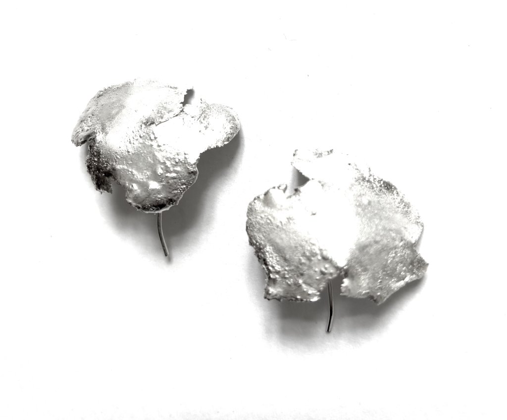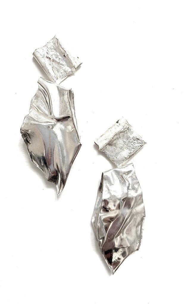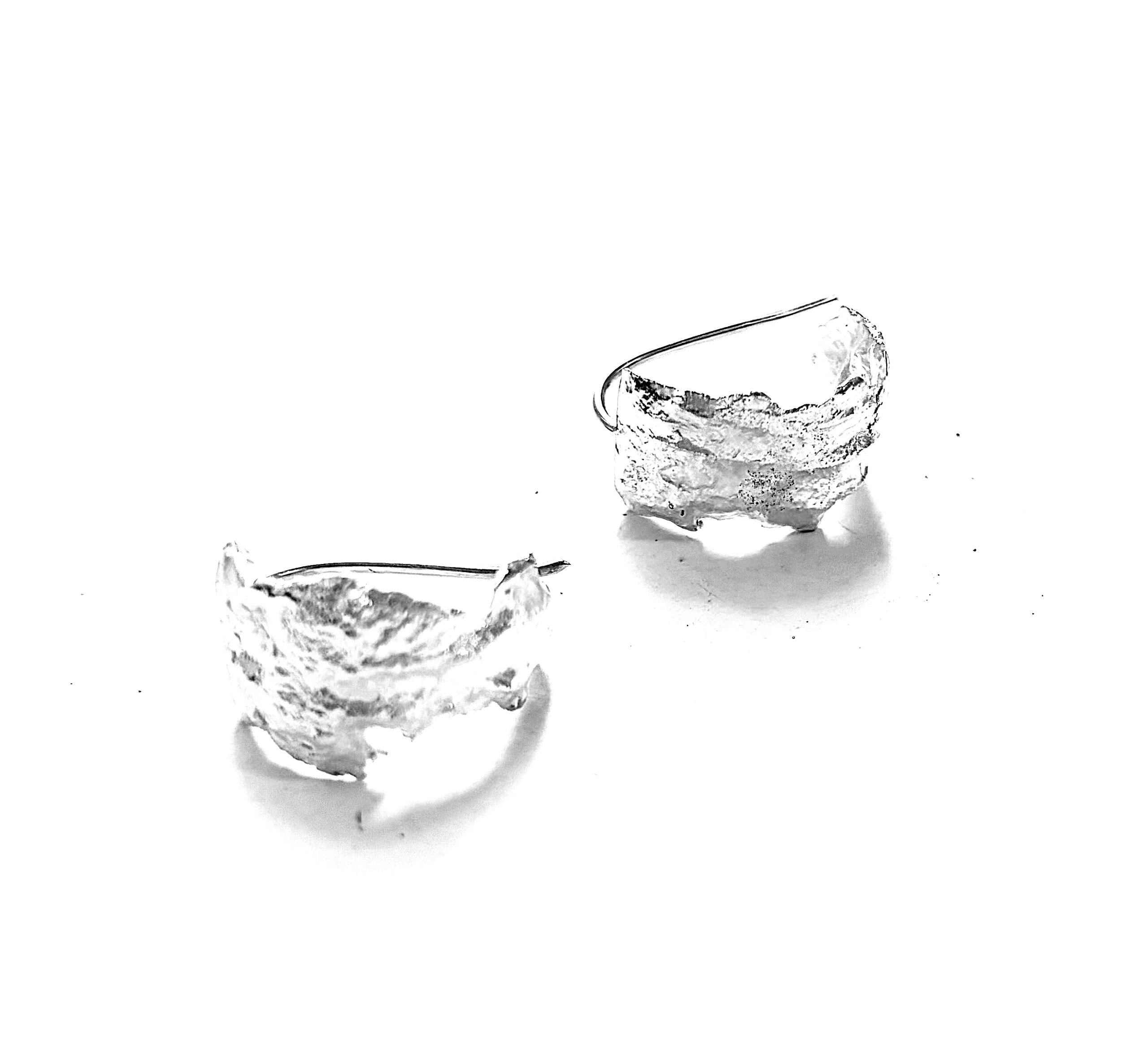 I melt fine silver to make .950 silver of a higher grade, then roll out the ingot to each particular shape and size for the designs which unfold as if being overtaken by the gods themselves.